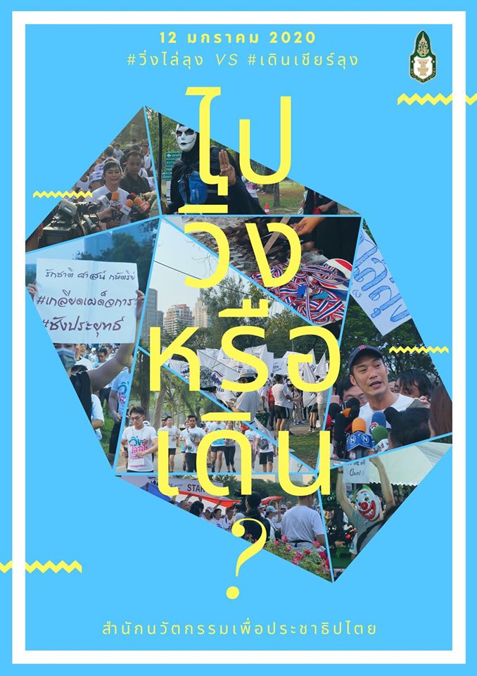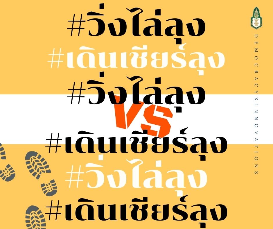 แล้วเราควรจะไป #วิ่งไล่ลุง หรือ #เดินเชียร์ลุง การสร้างความแตกต่างแบบ แบรนด์-รอยัลตี้ ของ 2 กลุ่มการชุมนุมครั้งนี้ เต็มไปด้วยการใช้สัญลักษณ์เพื่อแสดงออกที่แตกต่างกัน เพื่อเน้นย้ำให้เห็นถึงความแตกต่างของมวลชนที่สนับสนุนอยู่เบื้องหลังนักการเมืองของตน ถ้าเราไป #วิ่งไล่ลุง สินค้า และอุปกรณ์ประกอบฉากจำนวนมากในงาน ไม่ว่าจะเป็นเสื้อ ป้ายตกแต่งทั่วงาน ที่ต่อต้านรัฐบาลประกอบกับการเปิดดนตรีเพลงแร็พ (ที่พยายามจะสื่อความเหลื่อมล้ำเชิงโครงสร้าง) แบบ #ประเทศกูมี ที่ทำให้คิดว่าเราต้องเปลี่ยนแปลงประเทศแบบที่เรียกว่า #ชังลุงไม่ชังชาติ แต่ถ้าไป #เดินเชียร์ลุง เราก็จะเห็นการสัญลักษณ์ในทิศทางตรงกันข้าม คือ เชียร์ลุง รักลุงตู่ อยากให้ลุงตู่อยู่ยาว บนเสื้อและหมวกที่สกรีนว่า “เดินเชียร์ลุง” เราจะเจอกับผู้ชุมนุมที่มาเป็นครอบครัวและสวมเสื้อหรือเครื่องแต่งกายเพื่อแบบ กปปส. ที่ตกแต่งตัวเองด้วยเครื่องประดับและโบว์ลายธงชาติ