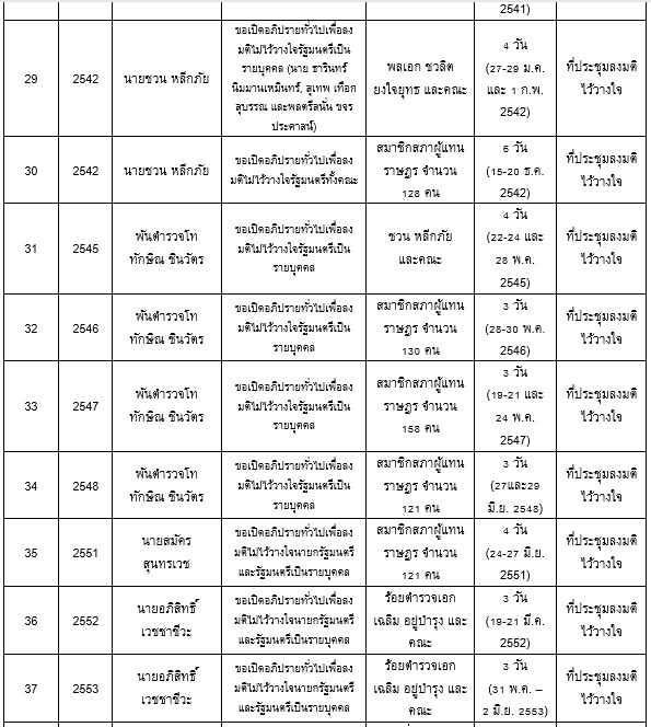 - timelineของการอภิปรายไม่ไว้วางใจในอดีต