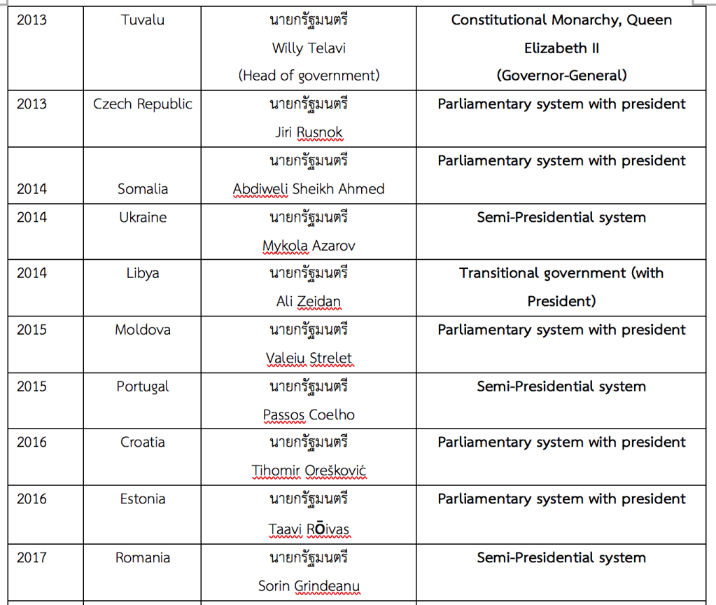 ว่าด้วยการอภิปรายทั่วไปเพื่อลงมติไม่ไว้วางใจกรณีศึกษาจากต่างประเทศในรอบสิบปี
