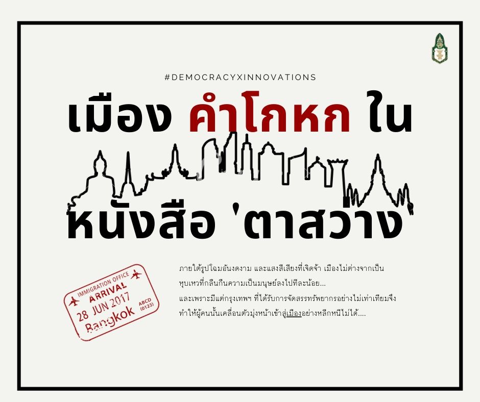 ณ ปัจจุบันเป็นการยากจะปฏิเสธว่าทิศทางอนาคตของประเทศไทยคือ การกลายเป็นสังคมที่เป็นเมืองมากยิ่งขึ้น ในบทความขนาดสั้น FAQ (Focused and Quick) ของธนาคารแห่งประเทศไทย[1] ได้อธิบายว่าในปี ค.ศ.2030 เศรษฐกิจโลก 61% จะมาจากกิจกรรมในเมือง และประชากรจะหลั่งไหลเข้าสู่เมืองจนประชากรเมืองจะขยายจาก 50% เป็น 70% ในปี ค.ศ.2050 คำถามที่น่าสนใจคือ อะไรกันที่รอคอยเหล่าผู้อพยพหลั่งไหลเข้าสู่เมืองอยู่กันแน่ และอะไรที่ทำให้พวกเขาต้องหนีออกจากเมืองกลับสู่ชนบท ซึ่งเราสามารถค้นพบคำตอบของคำถามได้จากกราฟฟิกโนเวลที่ชื่อว่า “ตาสว่าง”