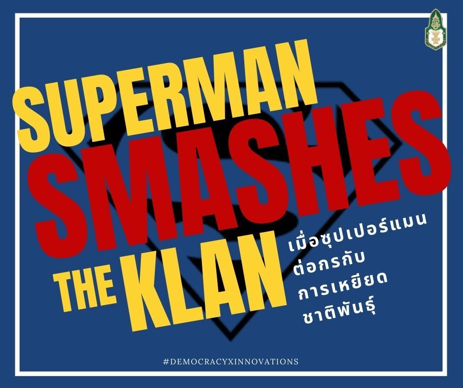 Superman Smashes the Klan ดัดแปลงจากตอนหนึ่งของละครวิทยุ The Adventures of Superman ในปี 1946 ชื่อตอนว่า “Clan of the Fiery Cross” ซึ่งตอนดังกล่าวเป็นส่วนหนึ่งในความเคลื่อนไหวต่อต้านกลุ่มเหยียดชาติพันธุ์อย่าง Ku Klux Klan โดยแต่ก่อนกลุ่ม Ku Klux Klan มีภาพลักษณ์เป็นบวกซึ่งนั้นมาจากผลของภาพยนตร์ที่มีเนื้อหาสนับสนุนกลุ่มคนขาวเป็นใหญ่อย่าง The Birth of a Nation ในปี 1915 แต่ละครวิทยุสำหรับเด็กอย่าง The Adventures of Superman กลับได้เปลี่ยนจากกลุ่มคนรักชาติให้กลายเป็นกลุ่มตัวร้ายที่น่ารังเกียจโดยสิ้นเชิง และกลายเป็นหนึ่งในหมุดหมายสำคัญที่ซุปเปอร์แมนส่งผลต่อการเมืองในโลกจริง
