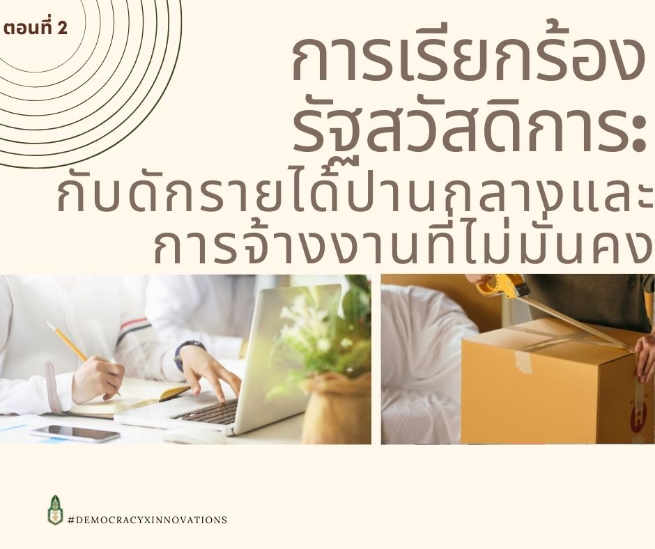การที่ประเทศไทยเป็นประเทศที่ติดอยู่กับดักรายได้ปานกลางทำให้ประเทศไทยติดอยู่ในกลุ่มประเทศที่มีรายได้ต่อหัวต่ำ และทำให้ไม่มีเงินส่วนเกินไปจ่ายส่วนที่เป็นสวัสดิการ ซึ่งตรงนี้ก็อาจมีการอภิปรายกันได้เมื่อนำตัวเลขมากางจริง ๆ ว่า มันมีมากน้อยขนาดไหน และสามารถโยกย้ายเงินส่วนไหนมาใช้ให้เกิดประโยชน์มากกว่านี้ได้ แต่คำถามที่สำคัญกว่าอีกอย่างหนึ่งคือ ใครจะให้ ? การจะเดินไปแบมือขอผู้มีอำนาจตัดสินใจเรื่องงบประมาณให้โยกมาเป็นค่าสวัสดิการก็คงเป็นไปได้ยาก ครั้นจะรวมตัวกันเป็นการเรียกร้องที่มีอำนาจต่อรองก็ไม่ได้ เนื่องจากเป็นนายทุนน้อยไม่มีกลุ้มก้อนทางเศรษฐกิจให้รวมกลุ่มเป็นเอกภาพได้ การเคลื่อนไหวจึงออกมาเป็นแนวทางของการเมืองภาคประชาชนที่เน้นจำนวนคนและอารมณ์เป็นหลัก โดยมีจุดร่วมเพียงทุกคนเป็นประชาชน ซึ่งไม่มีอำนาจต่อรองทางเศรษฐกิจได้เลย อาจมีแรงกดดันต่อรัฐได้บ้าง แต่ก็ไม่เหนือบ่ากว่าแรงที่รัฐจะควบคุมได้ จากตัวอย่างการเคลื่อนไหวของประชาชนที่ผ่านมาไม่ว่าจะเป็นกลุ่มพันธมิตรประชาชนเพื่อประชาธิปไตย กลุ่มแนวร่วมประชาธิปไตยต่อต้านเผด็จการแห่งชาติ หรือกลุ่มเยาวชนปลดแอก ในปัจจุบัน เพราะ การเรียกร้องในทางเศรษฐกิจถูกตัดขาตั้งแต่การเปลี่ยนโครงสร้างทางเศรษฐกิจไม่ให้มีแรงงานในระบบเป็นกำลังงาน (workforce) เพราะถูกผลักออกไปอยู่ในภาคส่วนที่ไม่เป็นทางการและได้รับการจ้างงานแบบไม่มั่นคงทั้งสิ้น