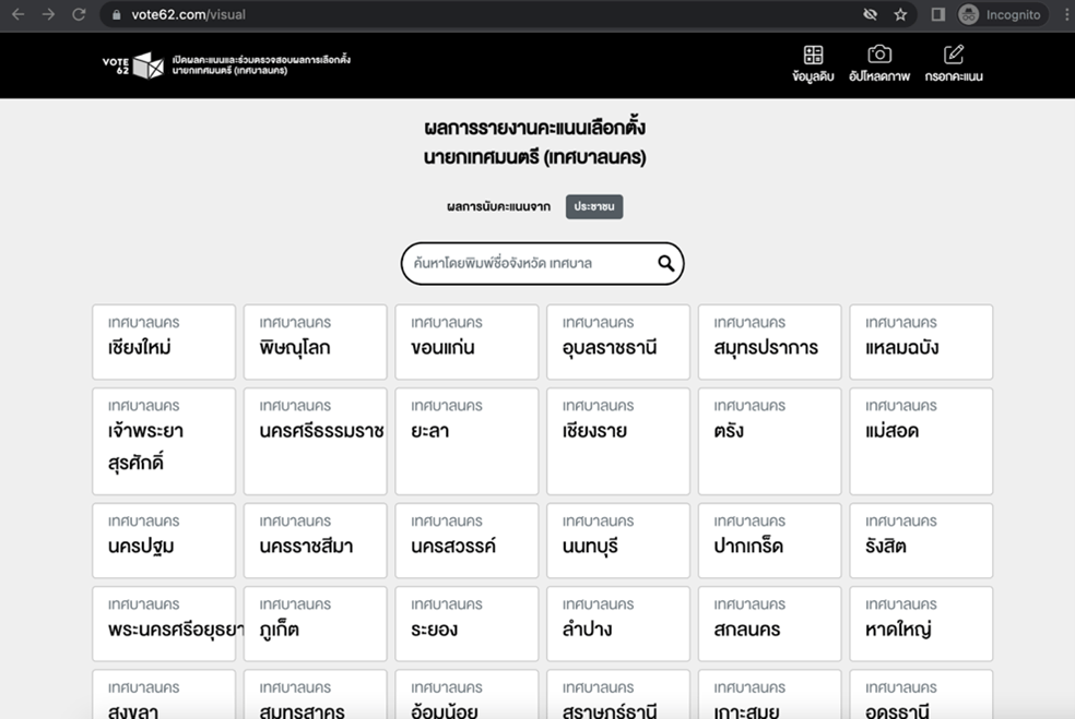 เว็ปไชต์เพื่อการตรวจสอบและติดตามการเลือกตั้งให้สุจริต ยุตธรรม และมีความโปร่งใส โดยประชาชนคนธรรมดาทั่วไป ซึ่งเปิดให้ใช้งานอย่างไม่จำกัด เพียงแค่เดินทางไปยังหน่วยเลือกตั้งยามนับคะแนนเสียงและทำการถ่ายภาพใบประกาศคะแนนผลหลังเสร็จสิ้นการนับคะแนนแล้วนำมาอัพโหลดลงในเว็ปไชต์ https://vote62.com