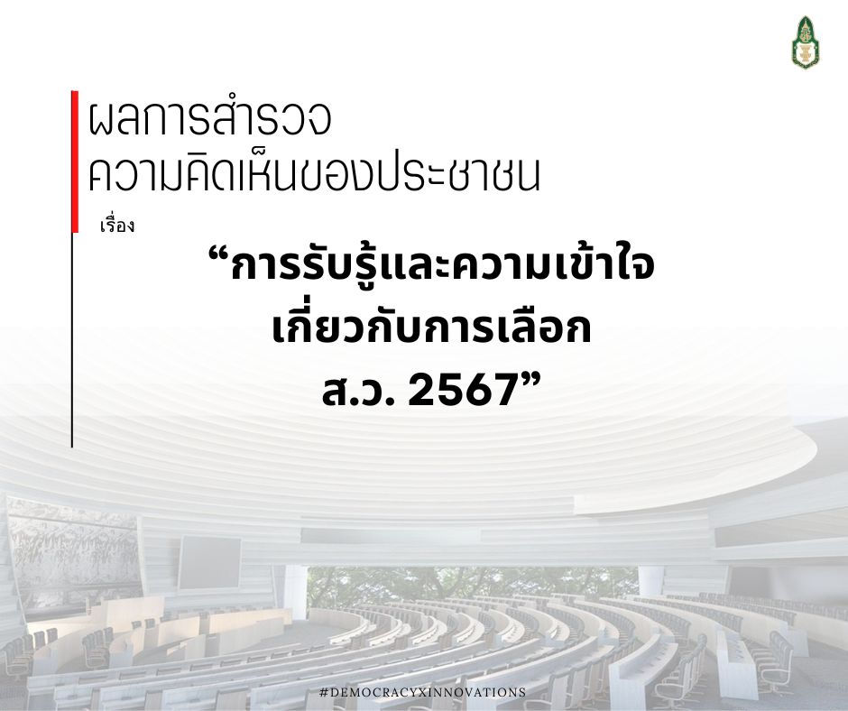สถาบันพระปกเกล้า โดย สำนักนวัตกรรมเพื่อประชาธิปไตย ร่วมกับ สำนักส่งเสริมการเมืองภาคพลเมืองและศูนย์พัฒนาการเมืองภาคพลเมือง 76 จังหวัด ทำการสำรวจความคิดเห็นของประชาชน เรื่อง “การรับรู้และความเข้าใจเกี่ยวกับการเลือก ส.ว. 2567” จำนวน 1,620 ตัวอย่าง โดยทำการเก็บข้อมูลระหว่างวันที่ 7-18 พฤษภาคม พ.ศ. 2567 ใช้วิธีการสัมภาษณ์ตามแบบสอบถามจากกลุ่มตัวอย่างซึ่งเป็นผู้มีสิทธิเลือกตั้ง (อายุ 18 ปีบริบูรณ์ขึ้นไป) ที่ได้จากการสุ่มตัวอย่างแบบแบ่งชั้นภูมิ (stratified random sampling) ในทุกจังหวัดรวมทั้งกรุงเทพมหานคร กำหนดค่าความเชื่อมั่นไว้ที่ร้อยละ 95 และค่าความคลาดเคลื่อนที่ ±2.5