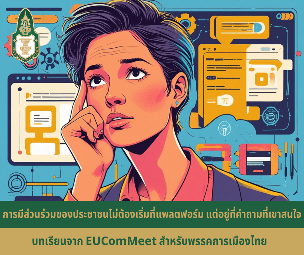 โครงการ EUComMeet (European Union Communication and Meeting) ซึ่งเริ่มต้นในเดือนมีนาคม 2564 และจัดกิจกรรมสุดท้ายในวันที่ 26 มิถุนายน 2567 ณ กรุงบรัสเซลส์ ถือเป็นหนึ่งในความพยายามขนาดใหญ่ในการทดลองใช้ deliberative platforms เพื่อเชื่อมโยงประชาชนจากหลายประเทศในยุโรปให้เข้าสู่กระบวนการตัดสินใจทางนโยบายร่วมกัน (Buis, 2024) โครงการนี้ได้รับทุนสนับสนุนจากโครงการ Horizon 2020 ของสหภาพยุโรปจำนวนเกือบ 3 ล้านยูโร มีผู้เข้าร่วมมากกว่า 1,500 คนจาก 5 ประเทศ ได้แก่ เยอรมนี ฝรั่งเศส อิตาลี ไอร์แลนด์ และโปแลนด์ หากถือตามจำนวนงบประมาณและจำนวนผู้เข้าร่วม นี่คือโครงการที่มีต้นทุนเฉลี่ยสูงมากต่อหัว และจึงกลายเป็นคำถามเชิงนโยบายที่สำคัญว่า “การลงทุนในกระบวนการมีส่วนร่วมจะคุ้มค่าหรือไม่ หากผลกระทบทางนโยบายยังต่ำ”